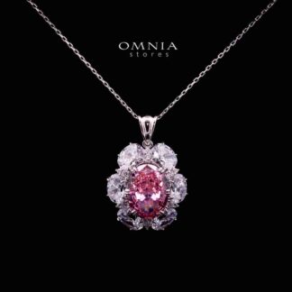 Omnia Beeta Pink and White Flower Silver Necklace in 925 Silver High Quality Simulated Diamonds Stones