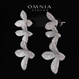 Omnia Dayana Leaf Drop Earrings With High Quality Simulated Diamonds in 925 Silver