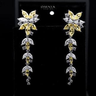 Abla Yellow Floral Drop Earrings in 925 Silver with Marquise and Pear-Cut High-Quality Simulated Diamonds