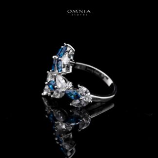 Abla Blue Floral Ring in 925 Silver with Marquise and Pear-Cut High-Quality Simulated Diamonds