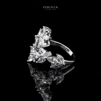 Abla White Floral Ring in 925 Silver with Marquise and Pear-Cut High-Quality Simulated Diamonds