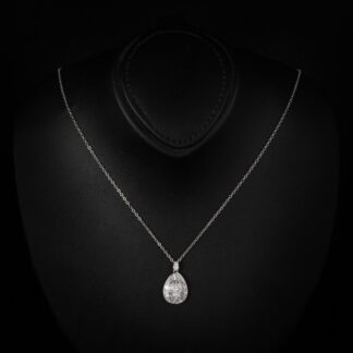 Irene White Pear Pendant Necklace With High Quality Simulated Diamonds in 925 Silver