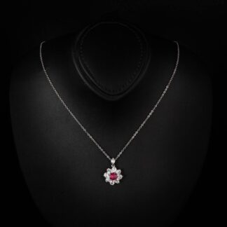 Gwen Floral Red and White Pendant Necklace With High Quality Simulated Diamonds in 925 Silver