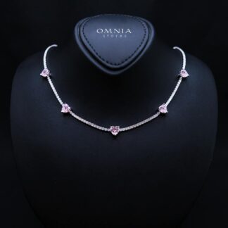 Omnia Israa Pink Necklace In 92.5 Silver High Quality Simulated diamonds