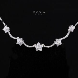 Henna White Round Brilliant Design Silver Necklace and Earrings Set in 925 Silver with High-Quality Premium Moissanite Stones