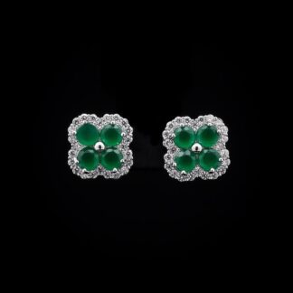 Omnia Abigail Green Crystal Stud Earrings in High-Quality Zircon Stone in Rhodium Plated