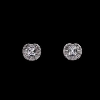 Omnia Hadeel Pure White Radiant-Cut Stud Earrings with High-Quality Zircon Stones in Rhodium-Plated Finish