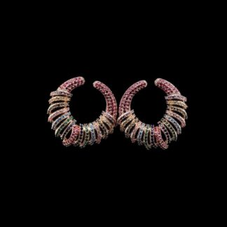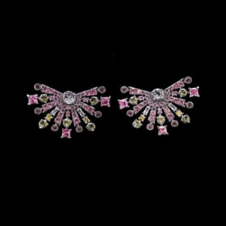 Omnia Zara Radiant Fan Design Earrings with Pink and Yellow Zircon Stones in High-Quality Rhodium Plated