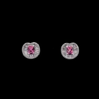 Omnia Hadeel Pink Radiant-Cut Stud Earrings with High-Quality Zircon Stones in Rhodium-Plated Finish