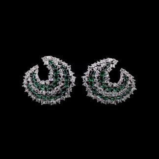 Omnia Salma Crescent Earrings with Green and White Zircon in High Quality Rhodium Plated