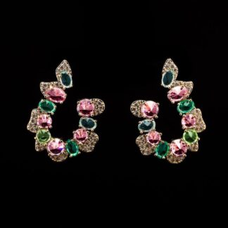 Omnia Samia Multi-Colored Hoop Earrings with Pink, Green, and Blue High-Quality Zircon Stones in a Gold-Tone Rhodium Plated Finish