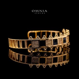 Omnia Noor Gold-Plated Bracelet and Ring Set with Black Square-Cut and Round-Cut High-Quality Zircon Stones in Elegant Design