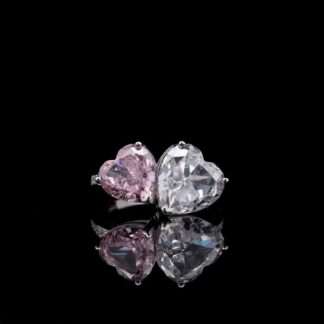 Omnia Dual Heart Ring in 92.5 Silver with High-Quality White and Pink Simulated Diamonds