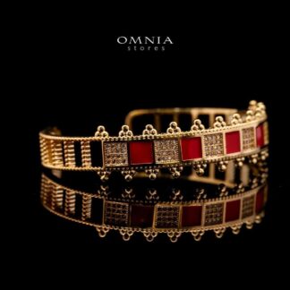 Omnia Noor Gold-Plated Bracelet and Ring Set with Red Square-Cut and Round-Cut High-Quality Zircon Stones in Elegant Design