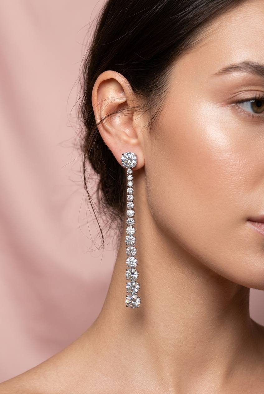 Designed with a cascading linear chain of round-cut cubic zirconia stones, these earrings catch the light beautifully with every movement, delivering the brilliant sparkle of diamonds at an accessible luxury price. Each piece is set in genuine 925 sterling silver with a rhodium-plated finish to ensure lasting shine and tarnish resistance — ideal for the warm climate and active lifestyle of the Gulf region.