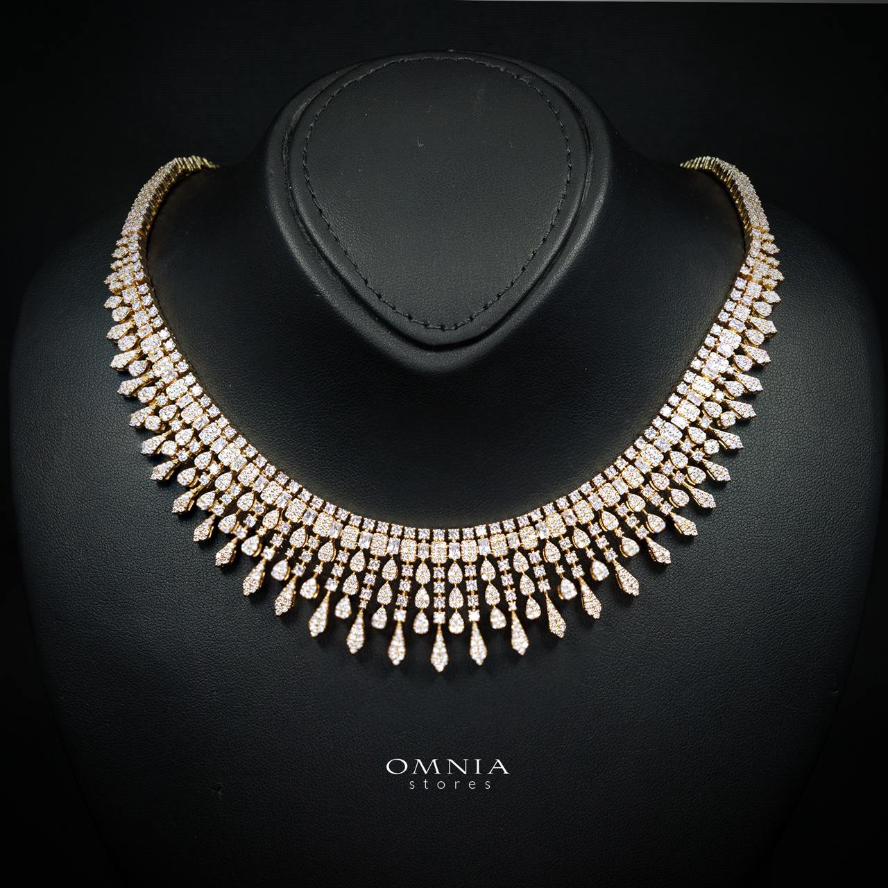 Finished with a premium rhodium plating, the set offers long-lasting shine, resistance to tarnish, and a smooth, luxurious feel on the skin. Its elegant gold-tone design complements both traditional and contemporary outfits, making it an ideal choice for bridal wear, formal events, or gifting.