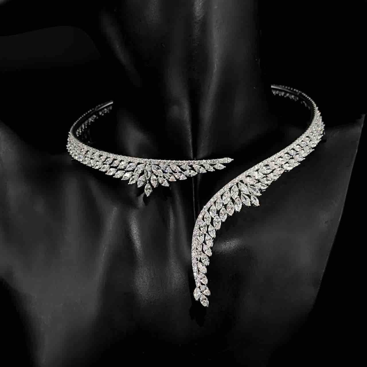 - The Continuous Glow: By utilizing VVS-clarity white stones against a cool silver frame, the set creates a “Wall of Light” effect, ensuring the bride remains the most radiant presence under both sunlight and grand chandeliers.