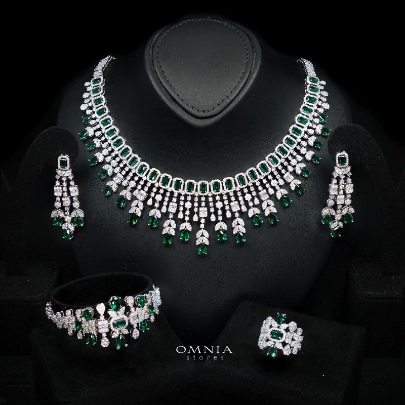Step into elegance on your special day with the Corinne Green Bridal Full Set Accessories, beautifully crafted for brides across the GCC who appreciate timeless sophistication. This exquisite set features a refined green-tone design embellished with high-quality premium zircon stones, delivering a dazzling, diamond-like brilliance that enhances every bridal look.