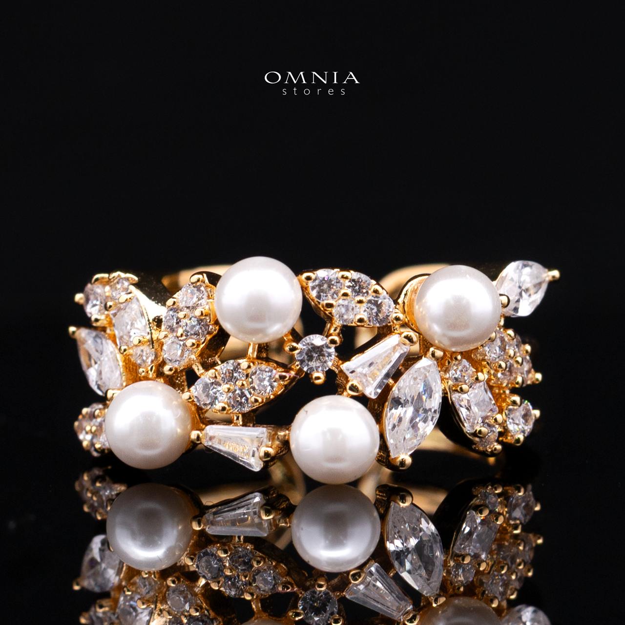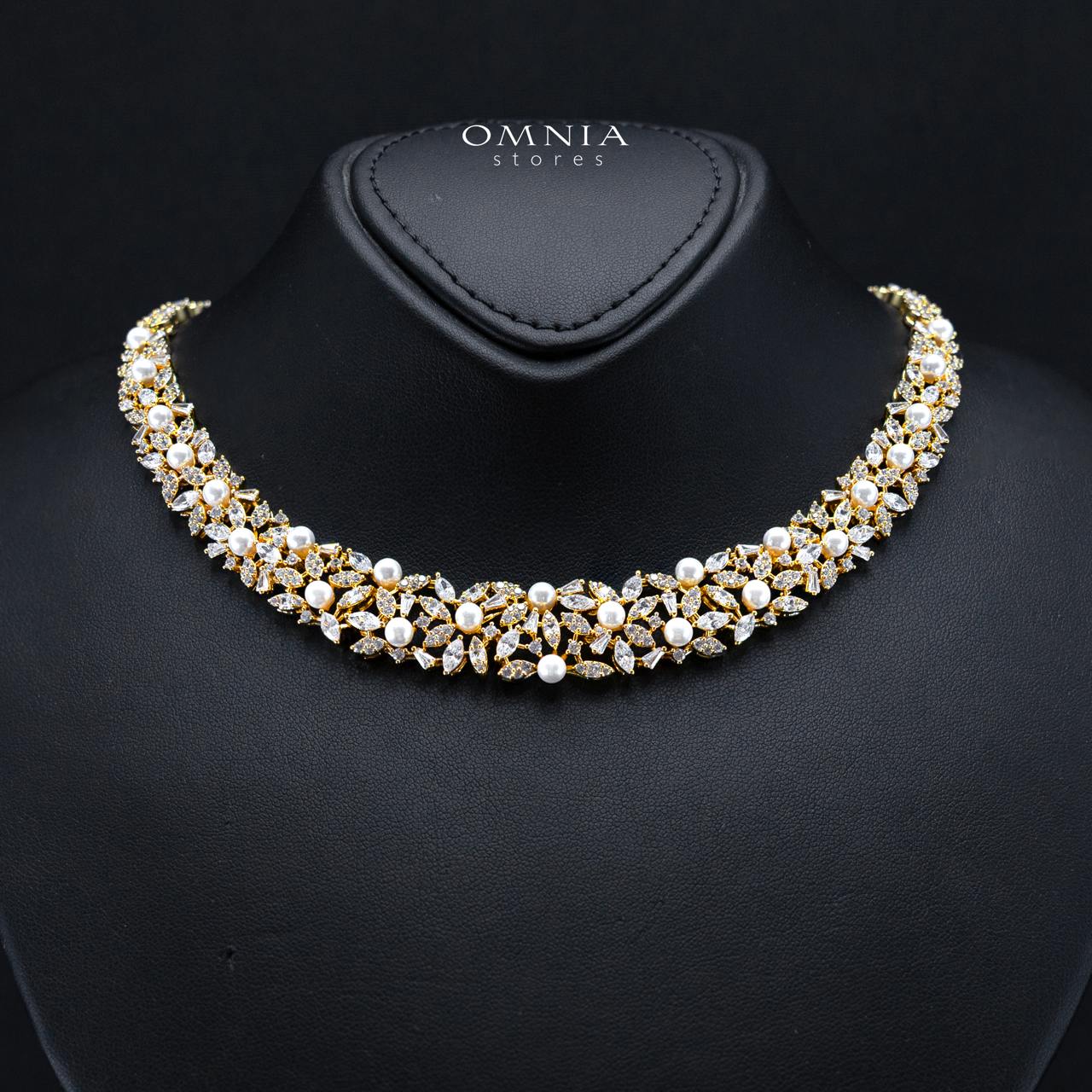Fadwa Gold Tone Pearl Luxury Bridal Full Set Accessories in High Quality Zircon Stone, Rhodium Plated