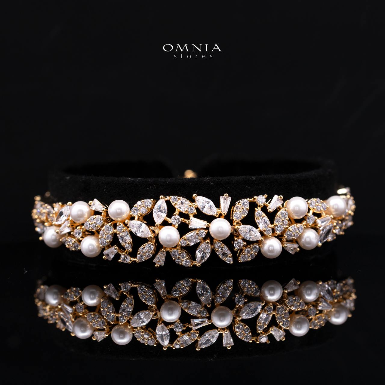 • Elegant gold-tone pearl design for a luxurious bridal look