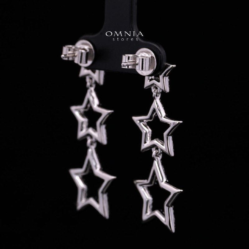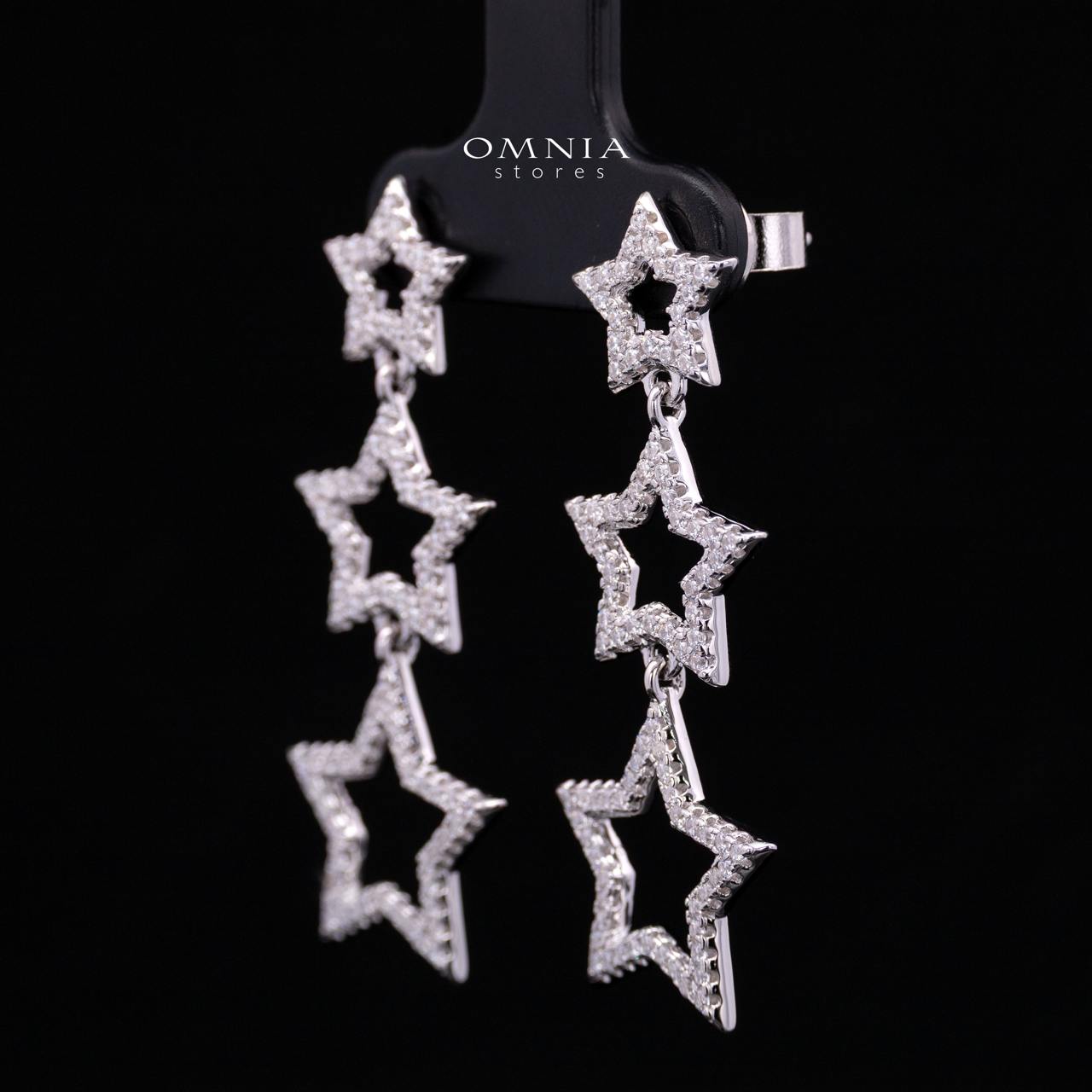 Kelahni Triple Star Drop Earrings — 925 Sterling Silver with Premium Cubic Zirconia