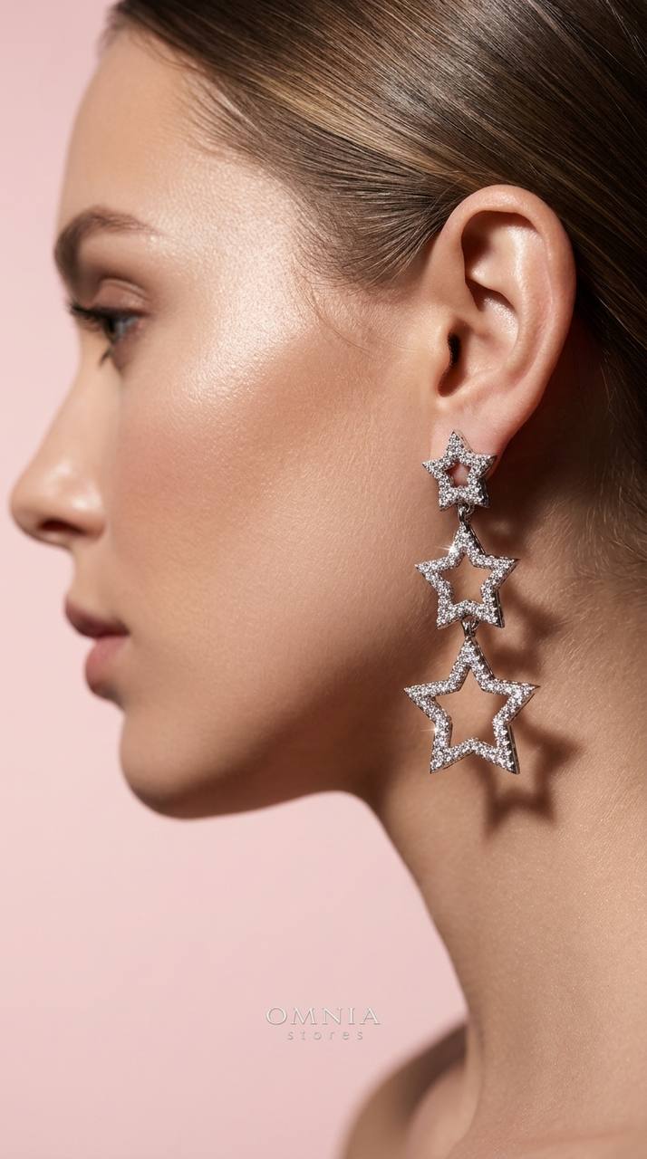 Make a statement that shines as bright as the night sky. Each earring features three cascading star-shaped frames, graduating in size from a delicate stud at the top to a bold open star at the bottom. Every frame is meticulously encrusted with AAA-grade cubic zirconia stones, delivering the radiant look of fine diamonds at an accessible price point.