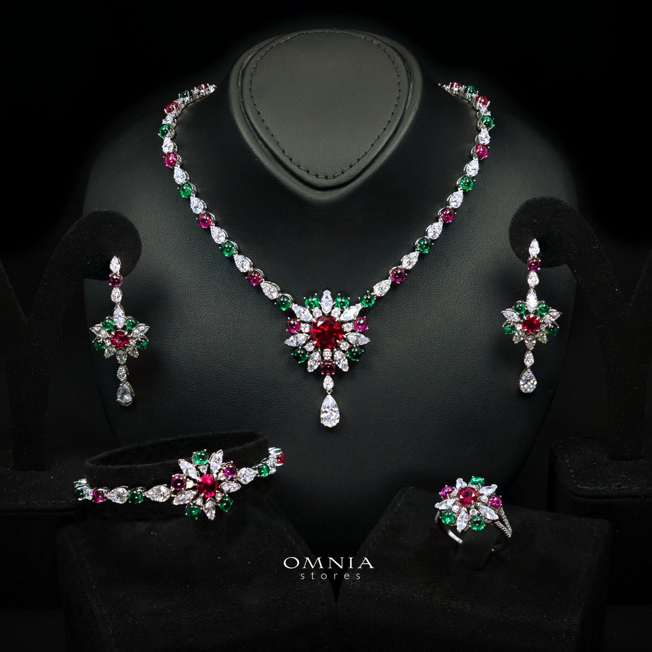 Expertly made from 925 sterling silver, each piece is finished with a high-quality plating for enhanced shine, durability, and long-lasting brilliance. The set includes a beautifully detailed necklace, matching drop earrings, a statement ring, and a coordinated bracelet—offering a complete bridal look that exudes grace and luxury.