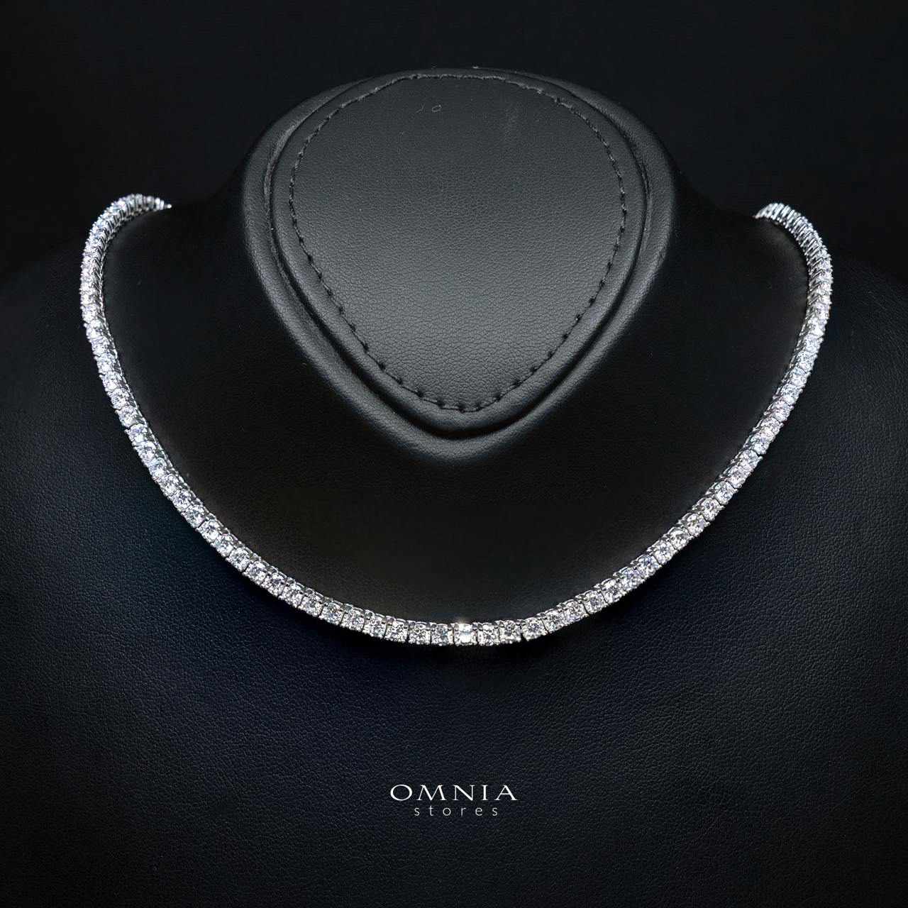 Crafted in 925 sterling silver and finished with a premium rhodium plating (0.5–1 micron thickness), this necklace offers enhanced durability, long-lasting shine, and resistance to tarnish—perfect for daily wear or special occasions. The sleek tennis design sits gracefully on the neckline, making it ideal for weddings, evening events, or luxury gifting.