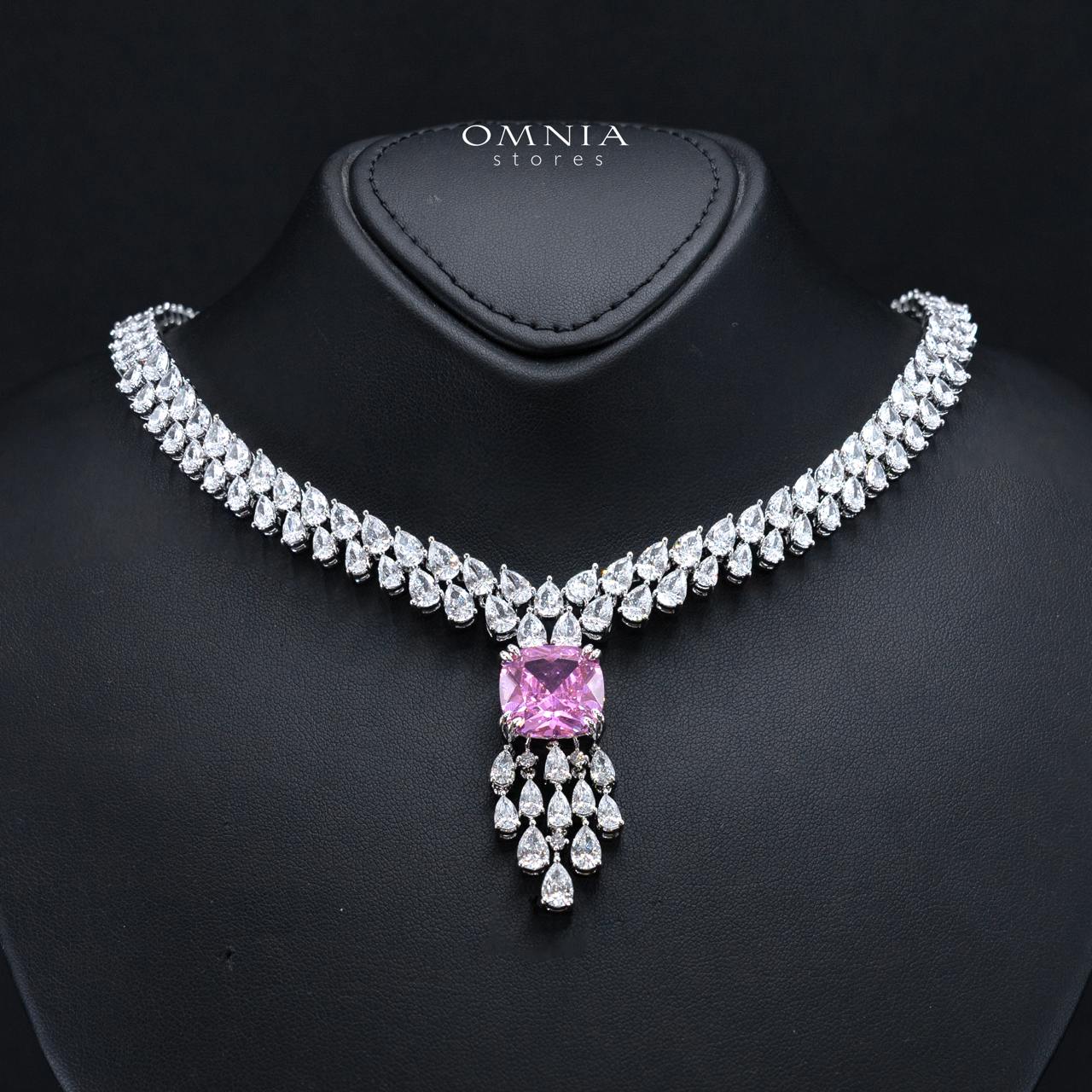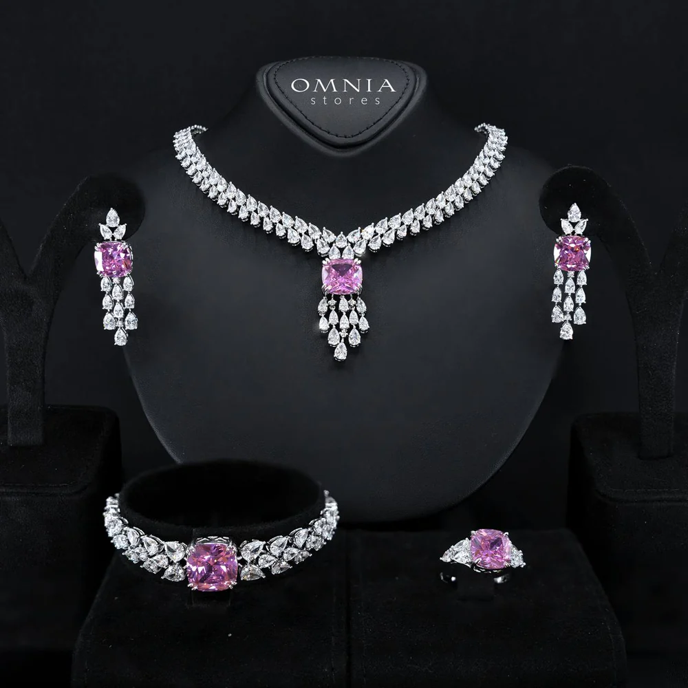 Celebrate your special day in style with the Omnia Nazaha Bridal Full Set, a radiant blend of tradition and modern elegance. This luxurious set features a harmonious mix of white and pink high-quality zircon stones set in lustrous rhodium plating, offering a two-tone brilliance that complements all bridal looks.