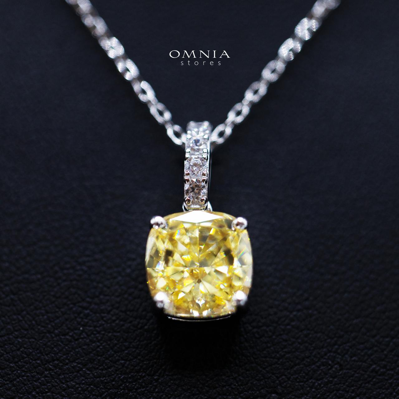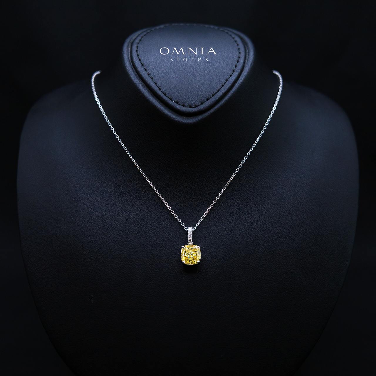 Norea Yellow Cushion-Cut Pendant Necklace in 925 Sterling Silver with Simulated Diamond Stones