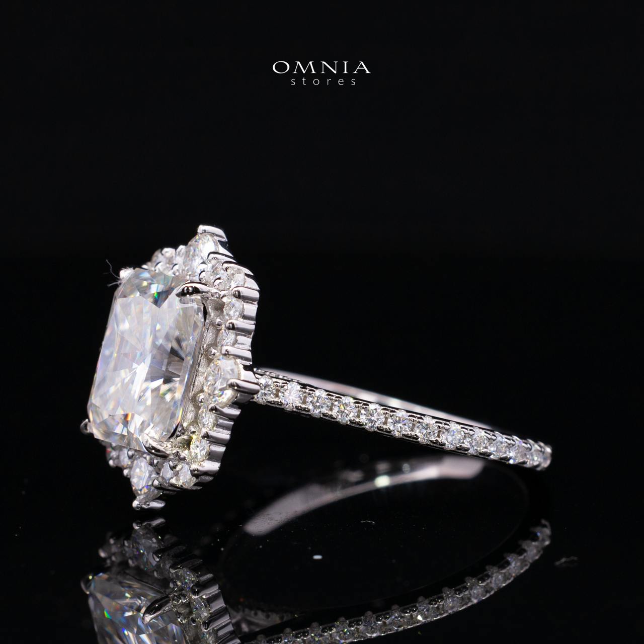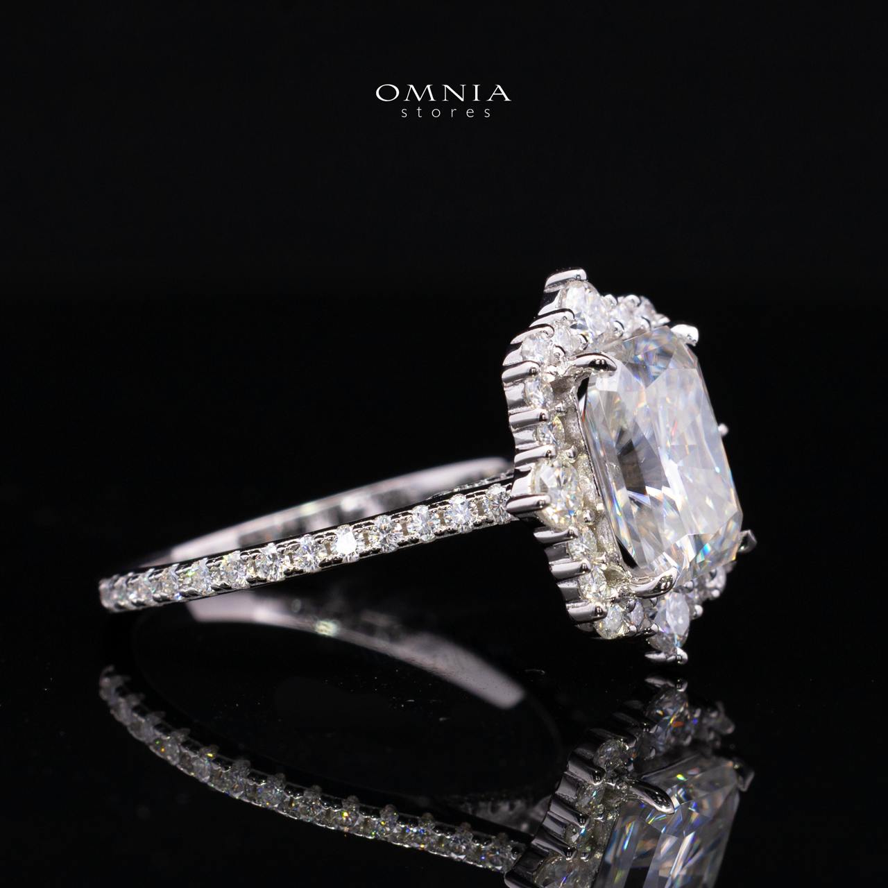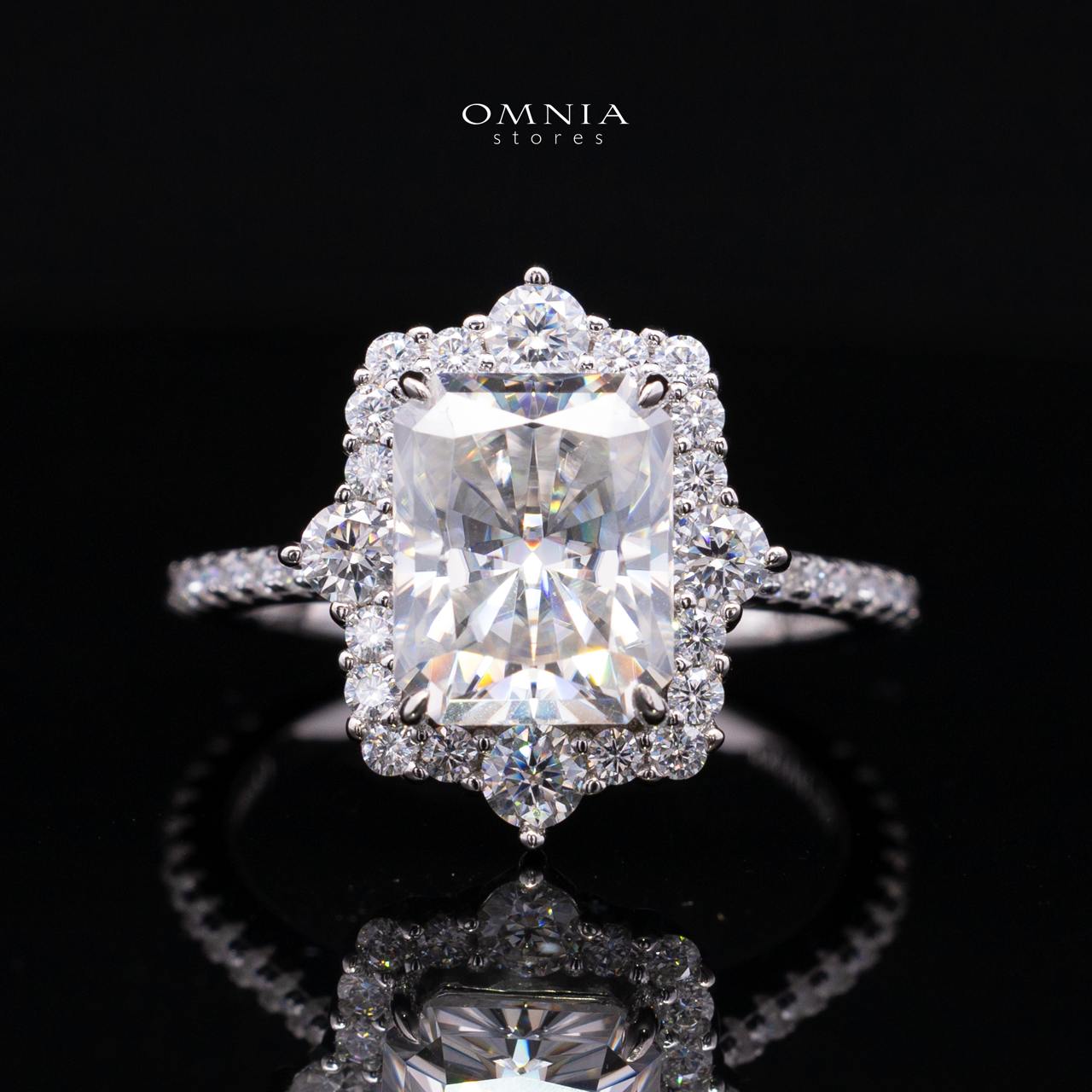Elevate your jewelry collection with the Nuwaira White Moissanite Radiant Halo Ring, a luxurious statement piece designed for women in the GCC who appreciate elegance, brilliance, and timeless sophistication. At its center is a breathtaking radiant-cut moissanite (8x10mm / 4ct), offering exceptional fire and clarity that rivals the beauty of natural diamonds.