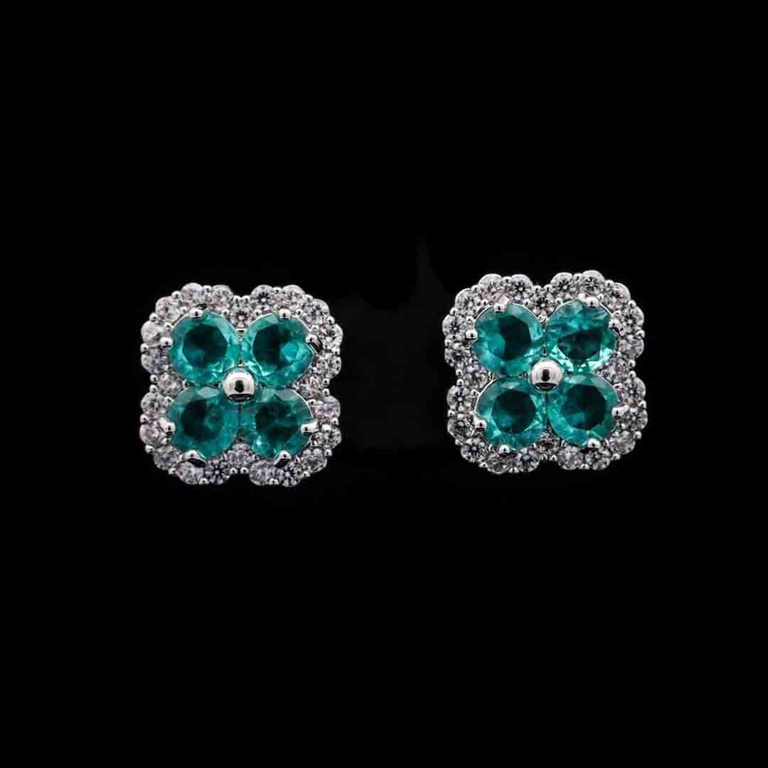 Omnia Abigail Turquoise Stud Earrings in High-Quality Zircon Stone in Rhodium Plated quantity