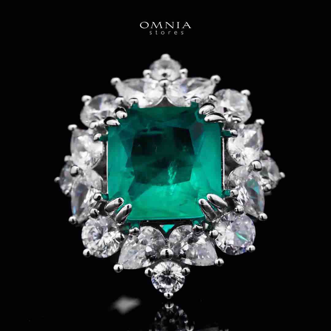 Omnia Adela Ring 92.5 Silver in High Quality Simulated Diamonds