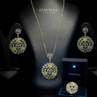 The Omnia Alaia Luxury Gold Bridal Full Set is a stunning and regal jewelry ensemble designed to elevate the bride’s elegance and sophistication. Featuring high-quality zircon stones set against a luxurious gold-toned rhodium-plated finish, this full set radiates timeless beauty, opulence, and grandeur. Each piece is meticulously crafted to capture light from every angle, creating dazzling brilliance and a luxurious aura for the modern bride.