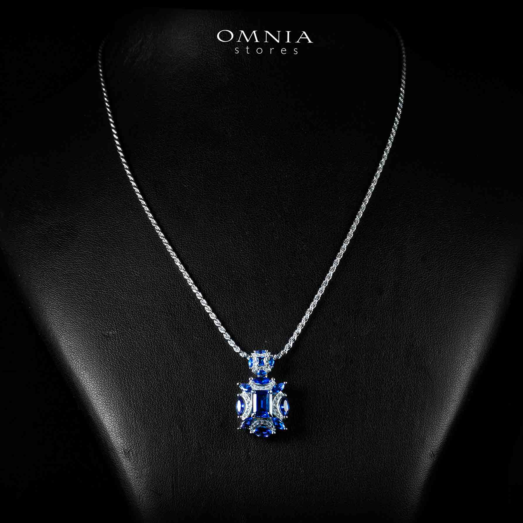 Omnia Aliz White and Blue Pendant Necklace With High Quality Simulated Diamonds in 925 Silver