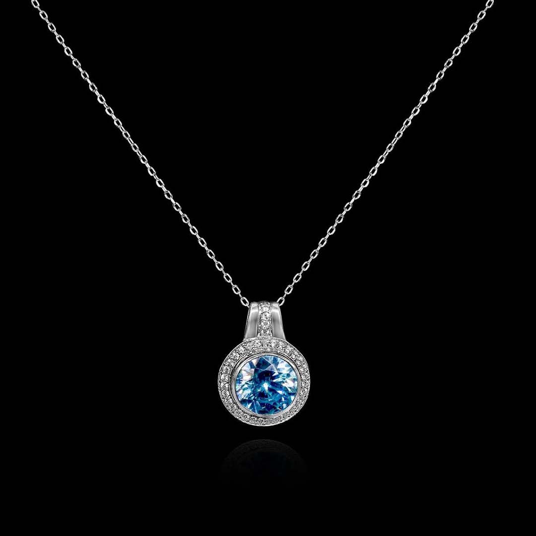 Omnia Heart Blue Necklace 925 Silver in High Quality Simulated Diamonds