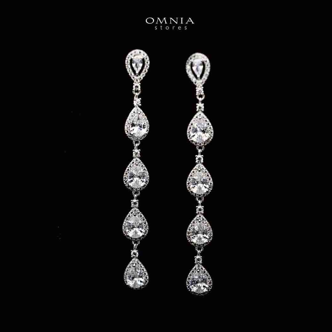 Omnia Amal Long Drop Earrings in 92.5 Silver with High Quality Zircon Stones