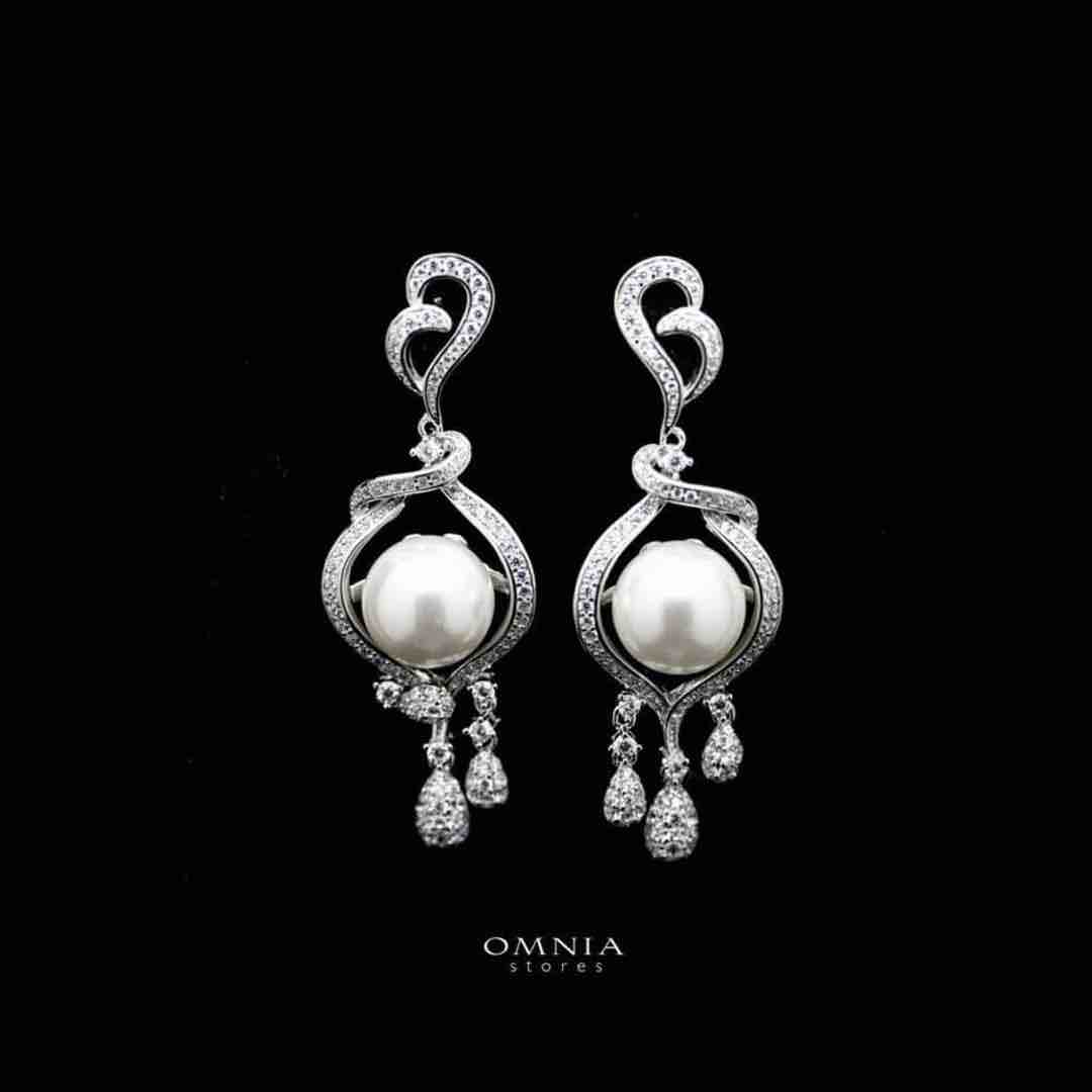 Omnia Amara White Pearl Drop Earrings in 92.5 Silver with High Quality Simulated Diamonds quantity