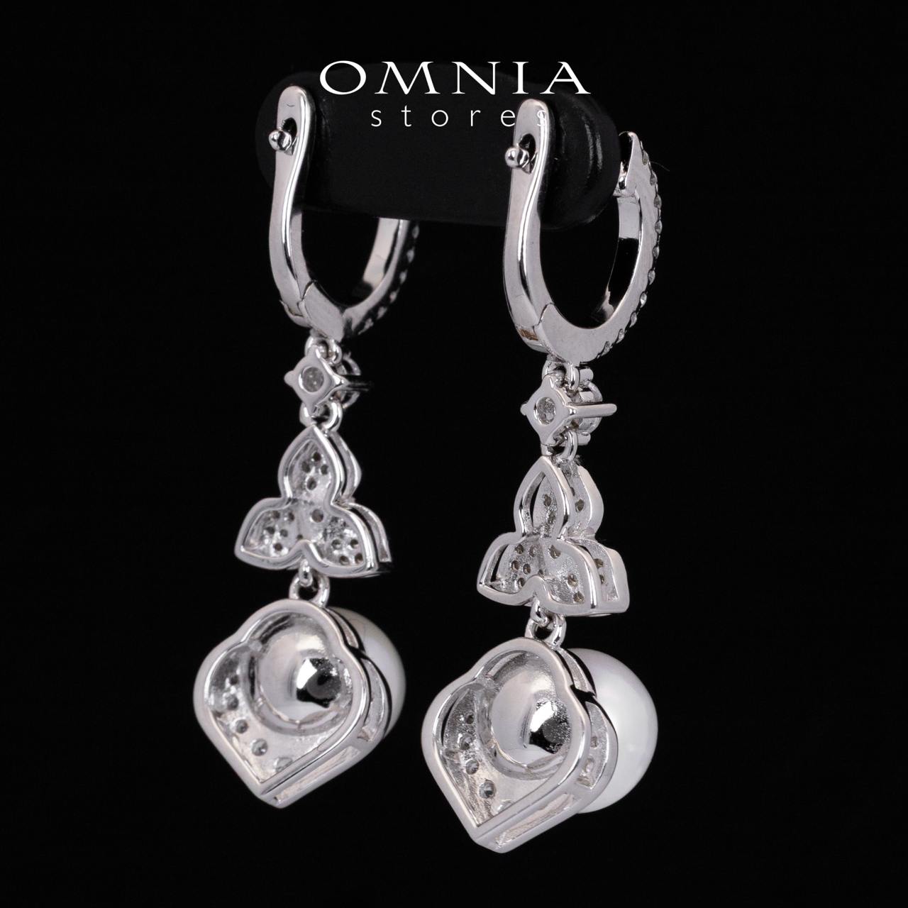 Omnia Ameena White Fresh Real Pearl Drop Earrings With High Quality Simulated Diamonds in 925 Silver