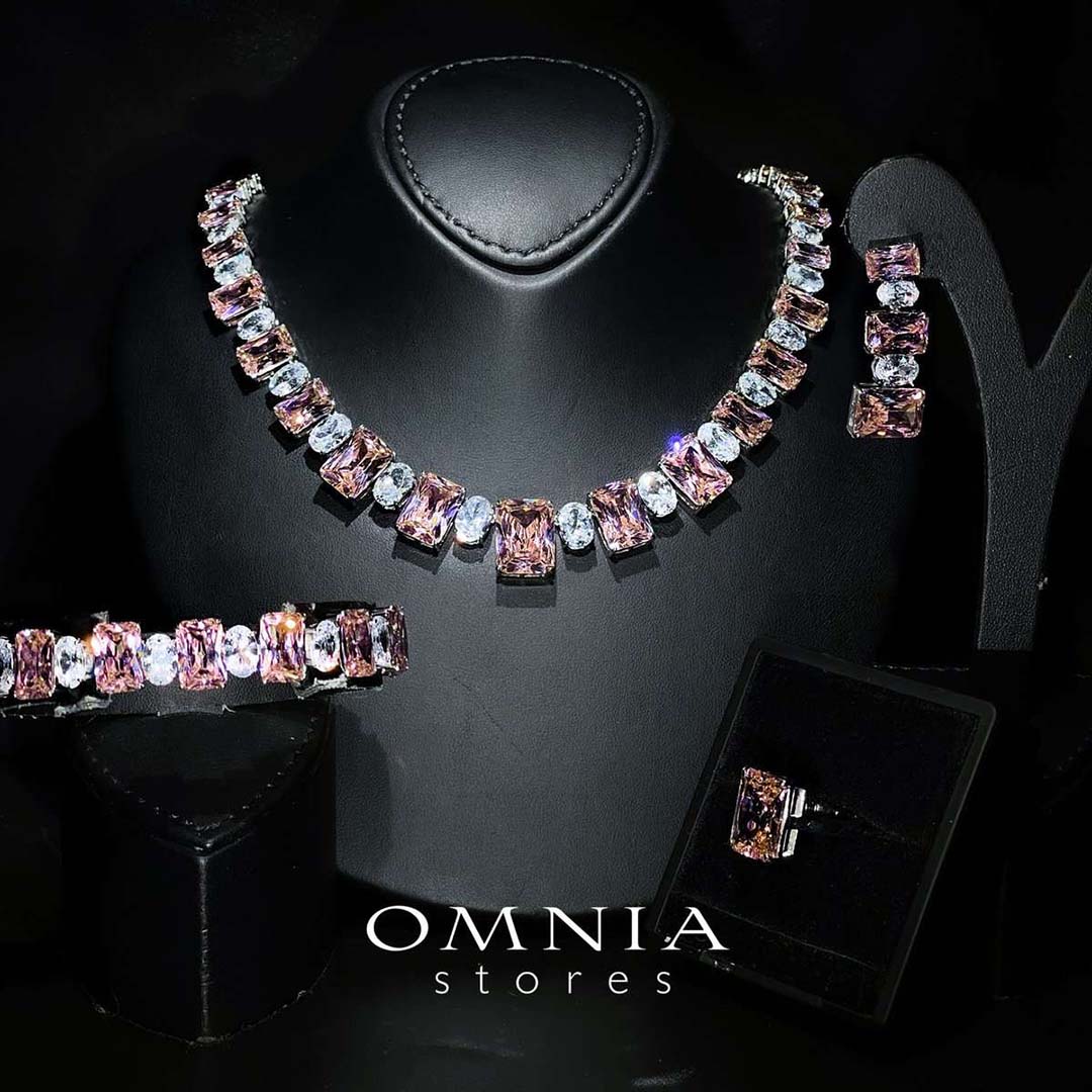 Celebrate the unique woman in your life with the Omnia Amina Pink Silver & Simulated Diamonds Set، this luxurious jewelry set features a necklace, earrings, bracelet, and adjustable ring, all crafted from 925 silver and embellished with high-quality simulated diamonds, t’s the perfect way to show her how much she means to you.