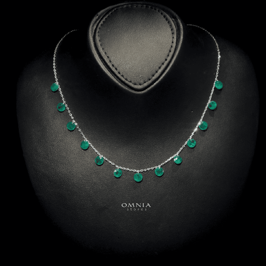 Omnia Anara Green Necklace 92.5 Silver In High Quality Simulated diamonds