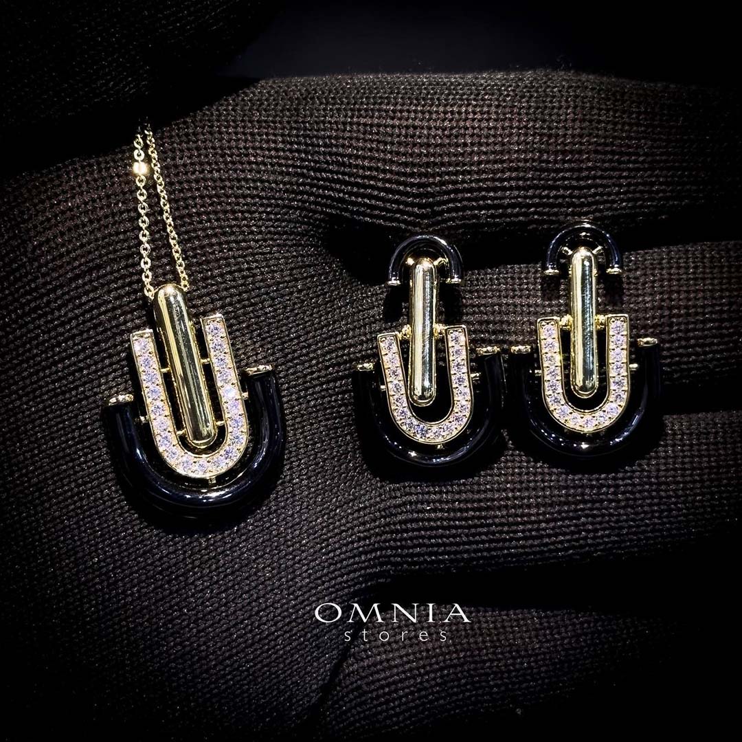 Omnia Andy Black Set Accessories in High Quality Zircon Stone Rhodium Plated