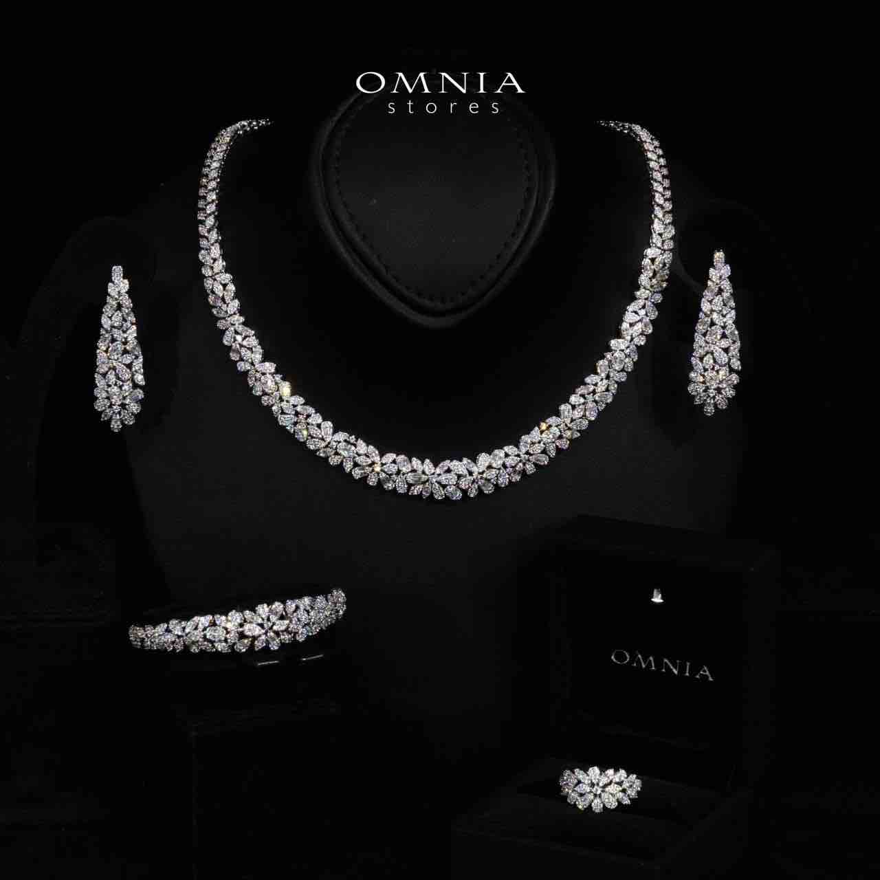 Omnia Asia White Luxury Bridal Full Set in High Quality Zircon Stone in Rhodium Plated