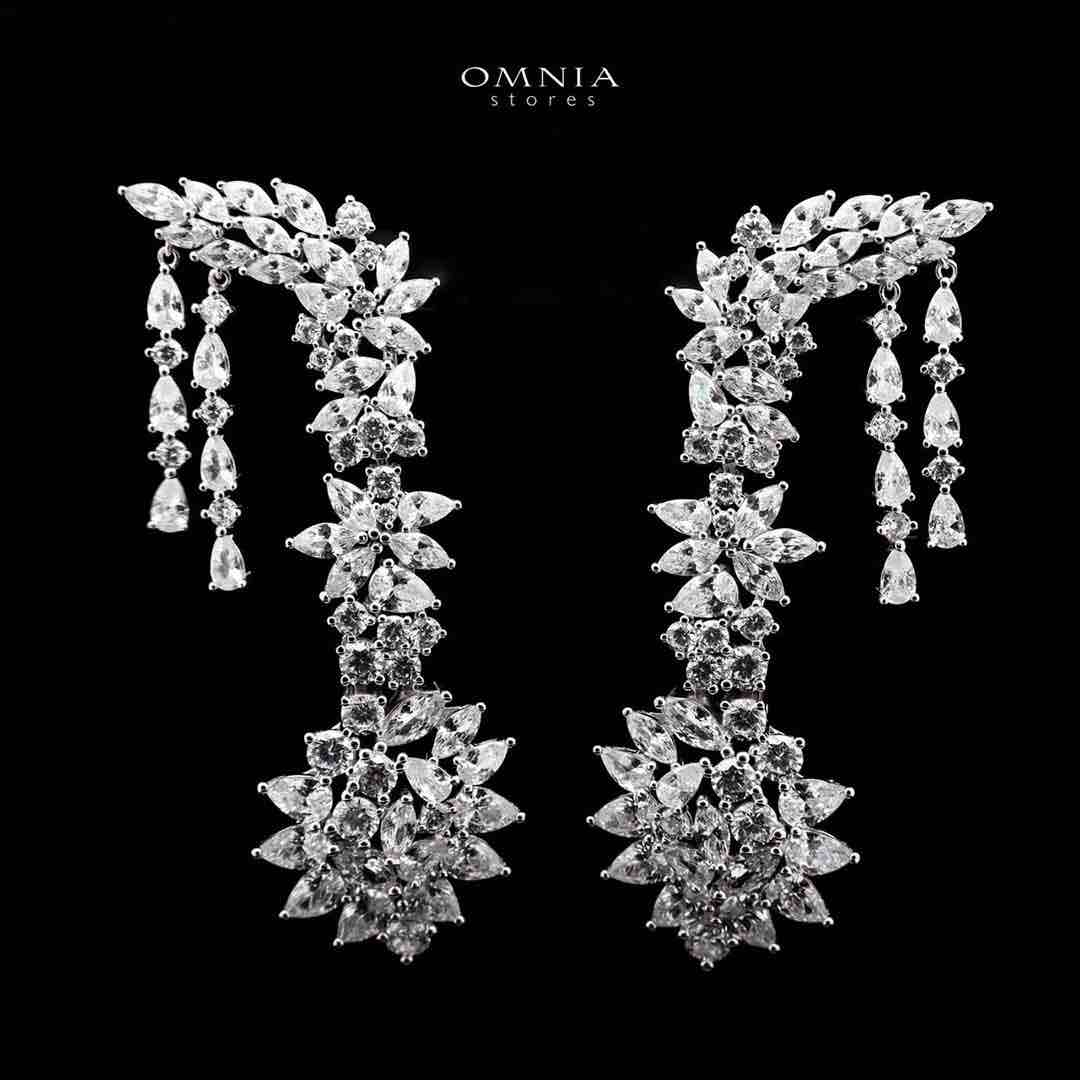 Omnia Aurora Floral Drip Earrings in 925 Silver with Pear and Marquise-Cut High-Quality Simulated Diamonds quantity