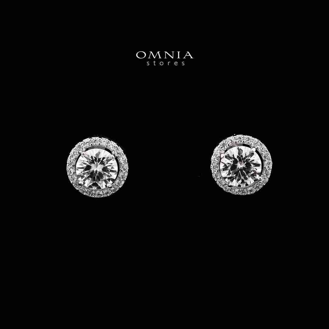 Omnia Aurora Halo Stud Earrings in 925 Sterling Silver with High-Quality Iced Cut Stones