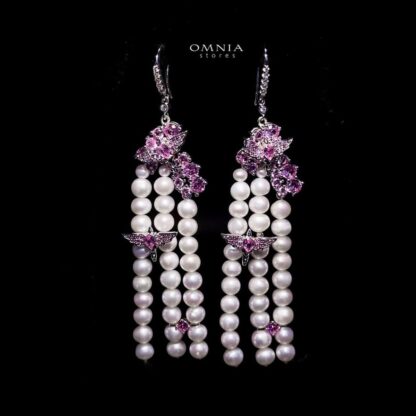 Omnia Blossom Pearl Drop Earrings in 92.5 Silver with Pink Accents and High Quality