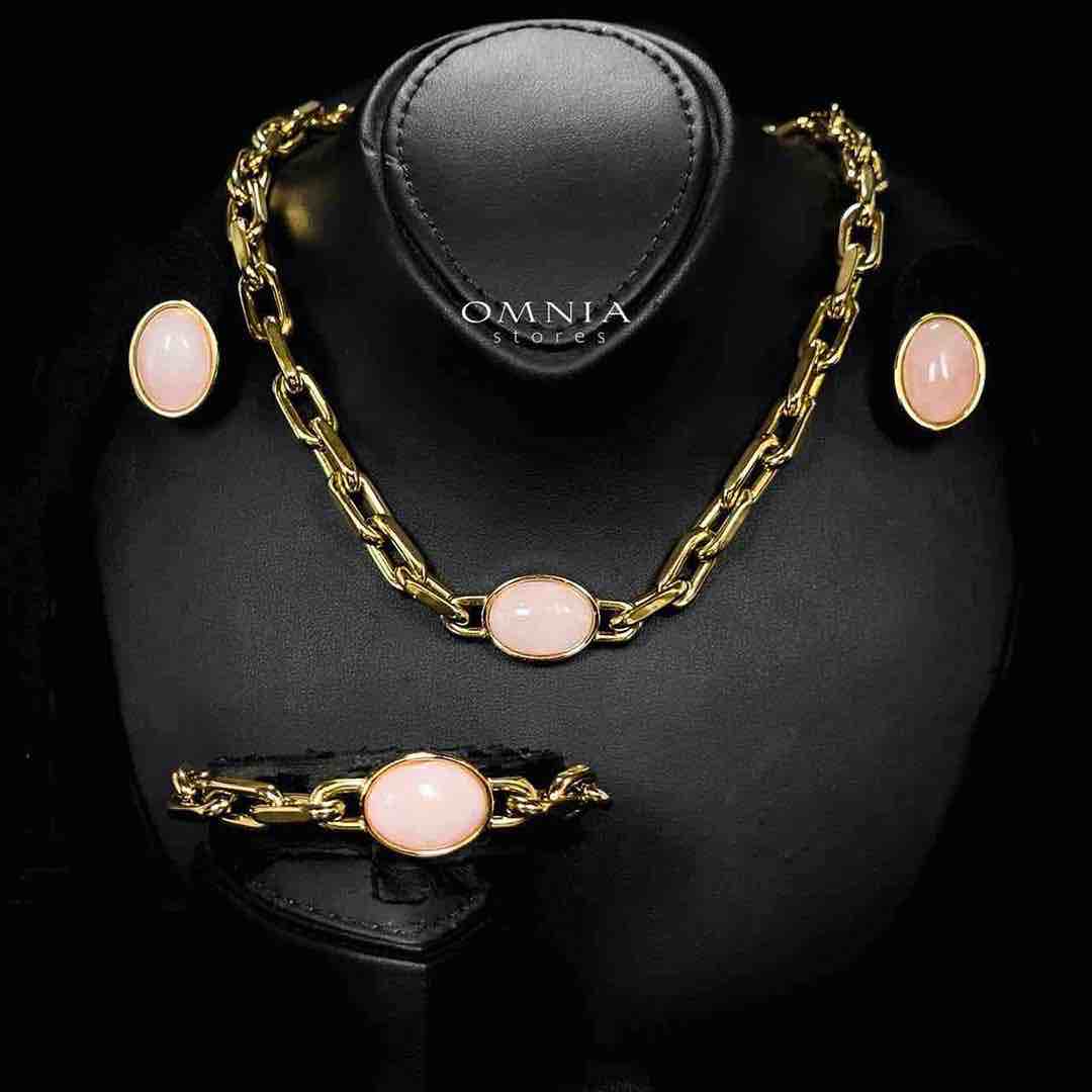 Elevate your elegance with the Omnia Caliya Jewelry Set, a graceful trio of necklace, bracelet, and earrings crafted from high-quality 8mm stainless steel. Finished in a radiant copper-plated gold tone and adorned with soft pink stone accents, this set is a celebration of femininity, charm, and timeless design.