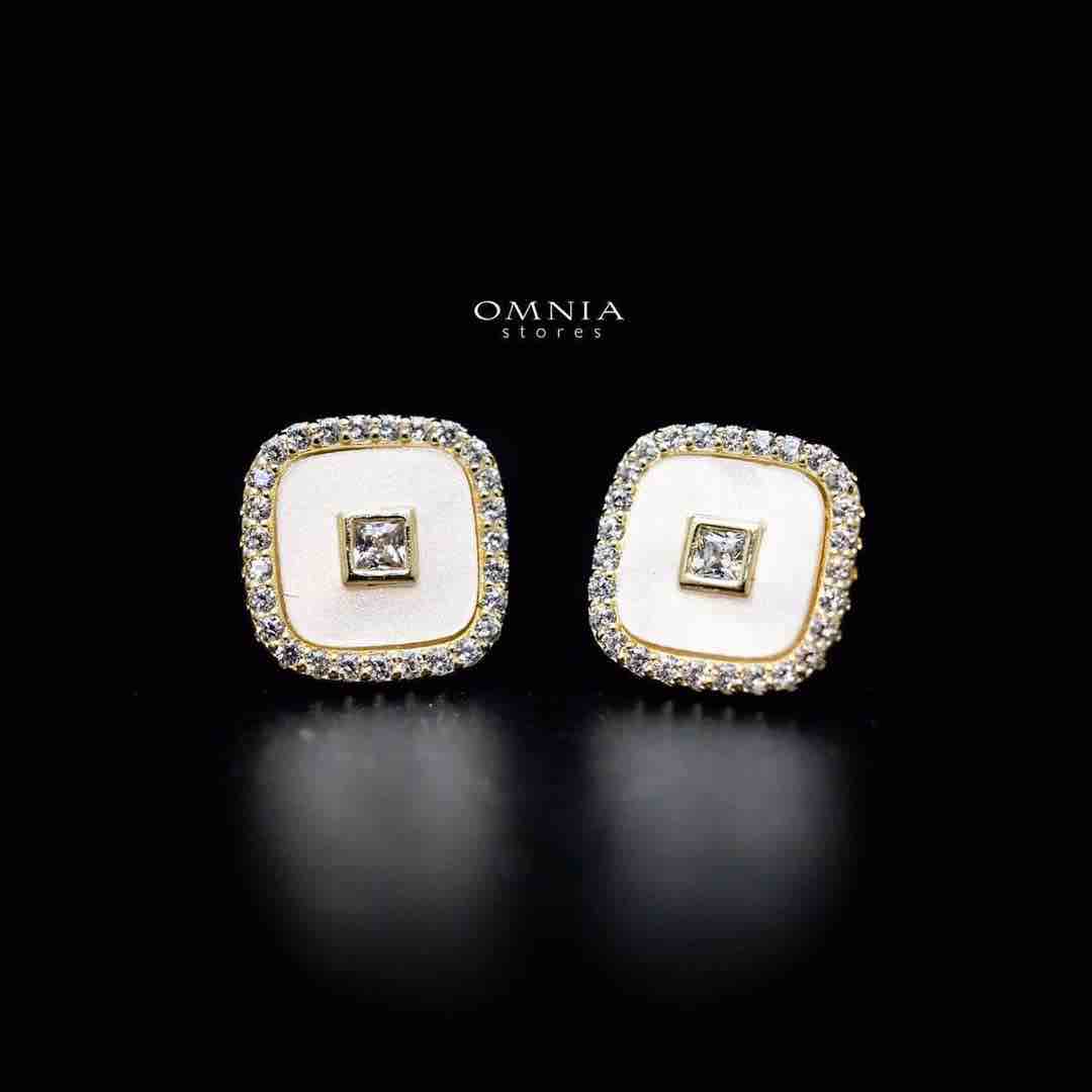 Omnia Camilla Golden Square Stud Earrings in 925 Silver with High Quality Iced Cut Stones