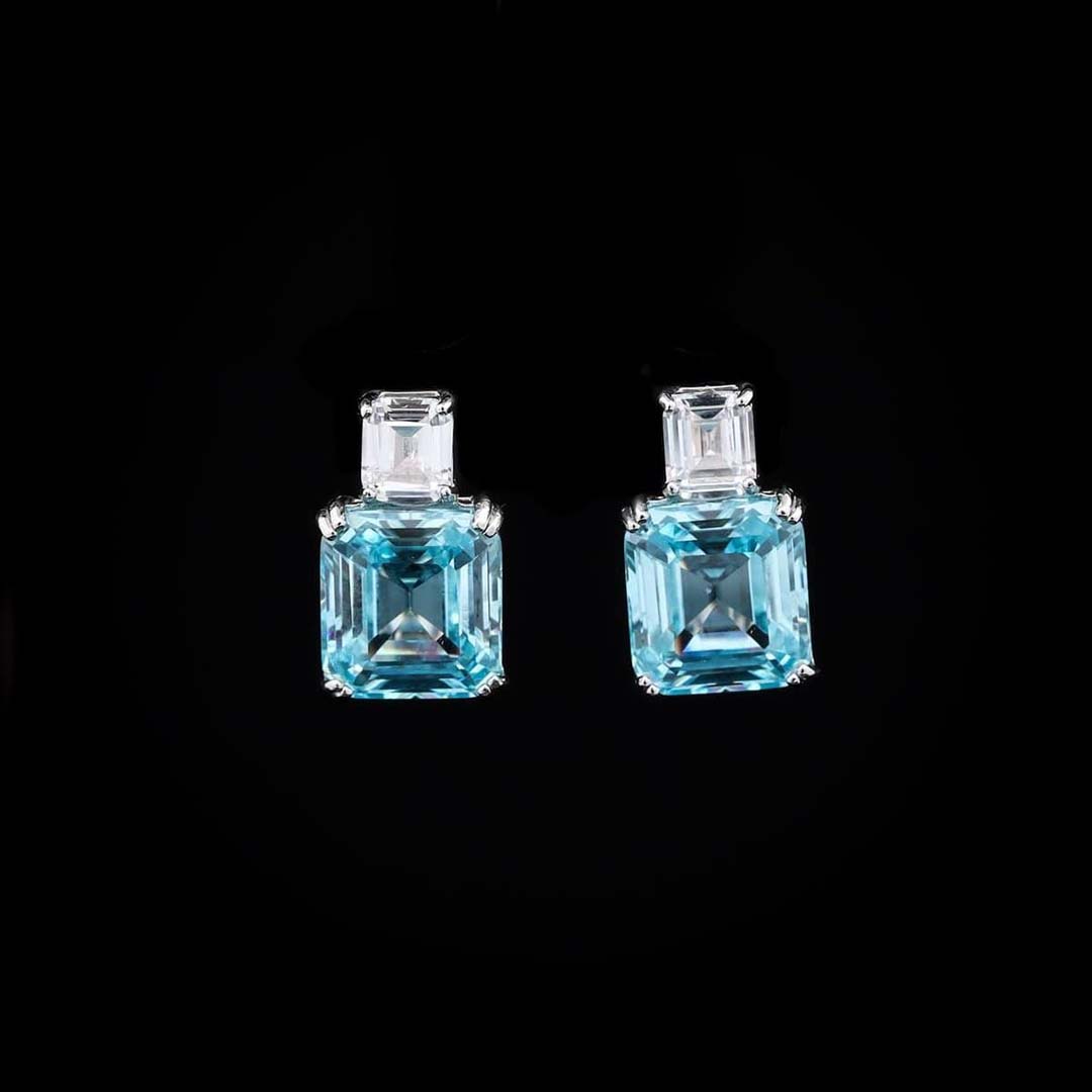 Omnia Candice Sky blue Emerald Cut Clip-On Earrings in 92.5 Silver with High Quality Simulated Diamonds quantity
