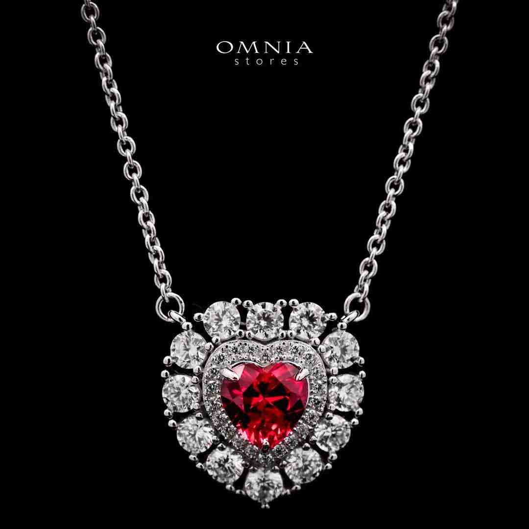 Omnia Lulwaan Silver Heart Necklace – Certified Ruby Elegance in 925 Silver